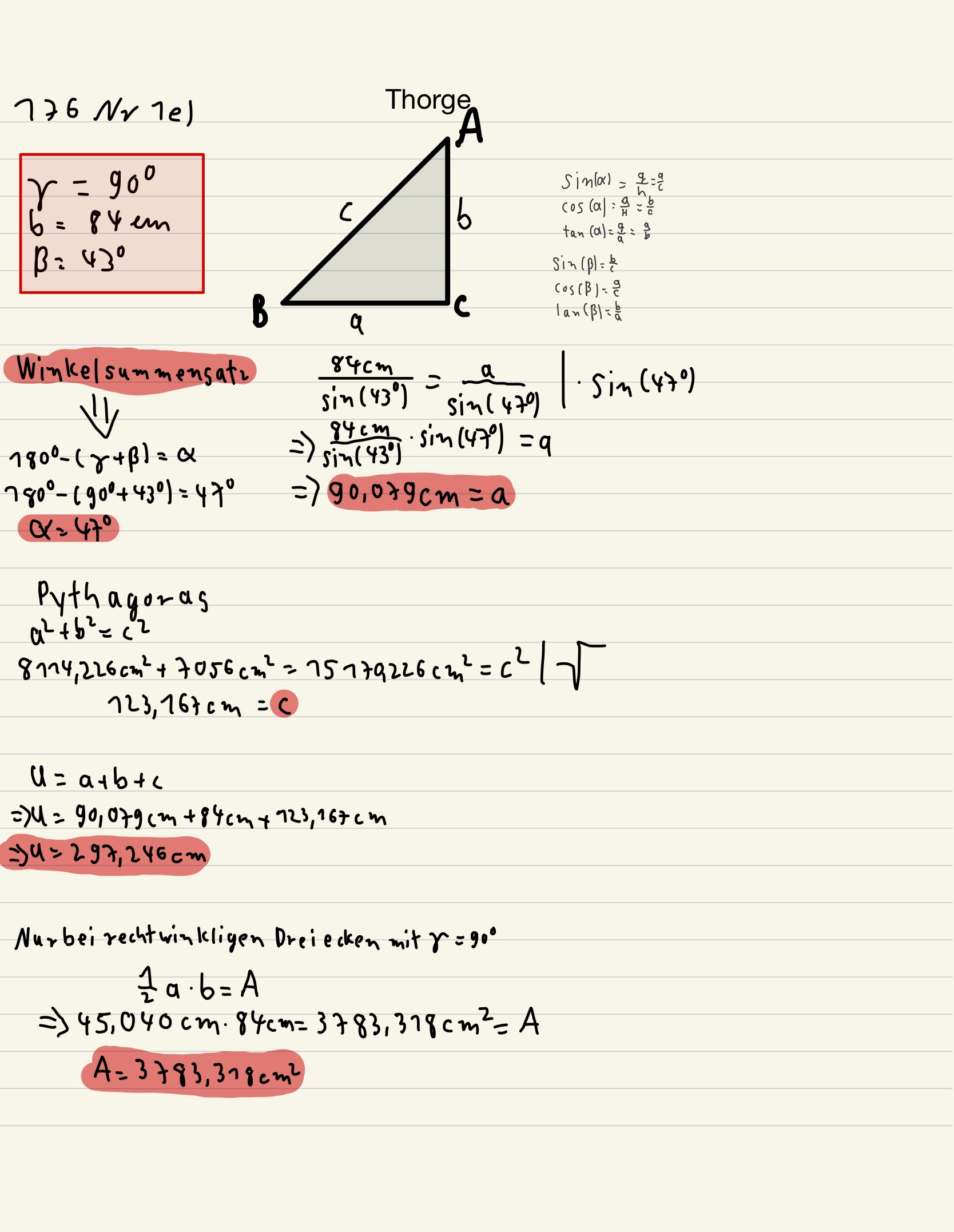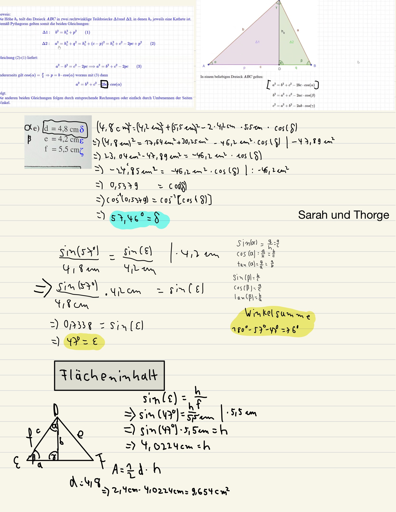 Trigonometrie und Sinus- und Kosinussatz